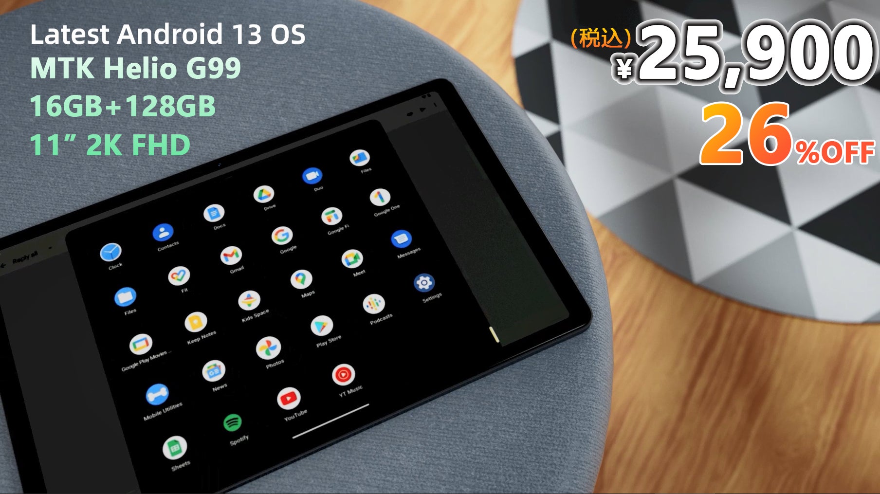 【史上最安値】Android 13 超高性能 Helio G99 CPU搭載 16GB+128GB タブレット、最安価格 25,900円‼