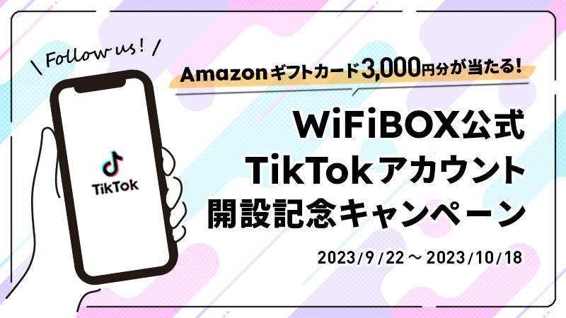 当社では現在X(旧Twitter)やInstagramの公式アカウントにおいてWiFiBOXに関する情報をお伝えしておりますが、より幅広い層に向けた情報発信のため、この度TikTokの公式アカウントを開設いたしました。今回、TikTokアカウント開設を記念したキャンペーンを開催するほか、TikTok限定企画として、WiFiBOXのWebCMに出演中のやす子さんのメイキング動画公開や特別エフェクトの提供を行います。