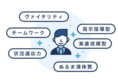 求職者は『ミイダス』独自の「可能性診断」で求職者のビジネスシーンにおける行動・思考の特徴やストレス要因、認知バイアスの強さなどを可視化し、ビジネスパーソンとしての自身の特徴や強みを知ることができます。
