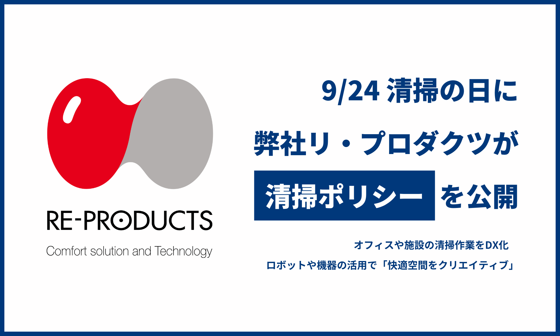 リ・プロダクツでは、創業から49年で培った清掃会社としてのノウハウと、自社サービス「おそうじレンタル」を通じてロボット活用を推進し、企業の清掃DXを推進してまいりました。この度の清掃ポリシーの制定は、掃除の日を契機にお客様へのさらなる満足度向上のために実施したものです。