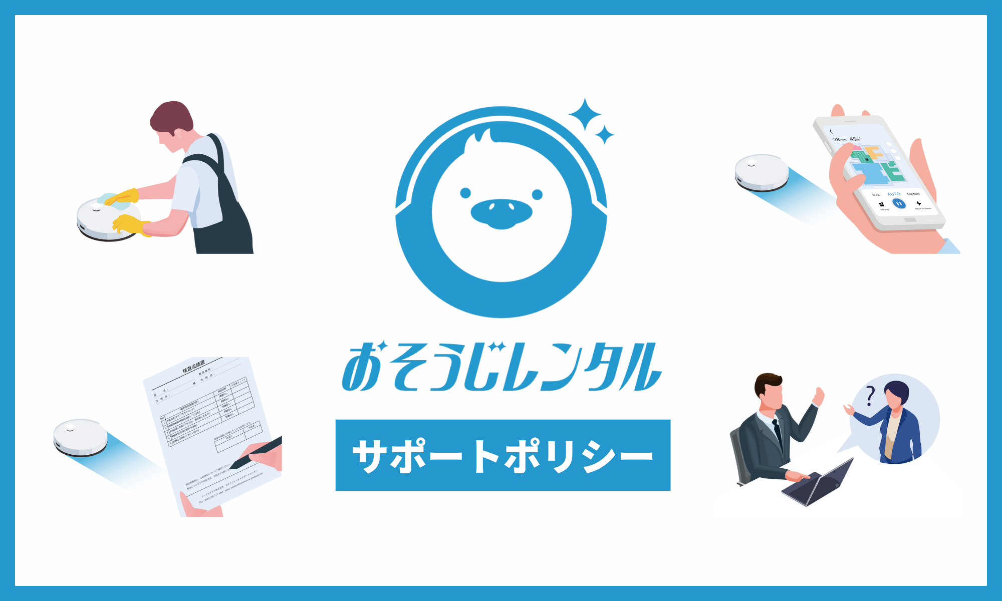 この度 企業としての清掃ポリシーのほかに、「おそうじレンタル」内において、お掃除ロボットを活用した清掃DXを推進するための清掃ポリシーも設定しました。「おそうじレンタル」では動作検証済みのものをお渡しするのはもちろんのこと、商品開発により新しい商品を提供し続けてまいります。さらにお客様の声を取り入れ、よりよいサービスの提供に向けて改善を続けて参ります。