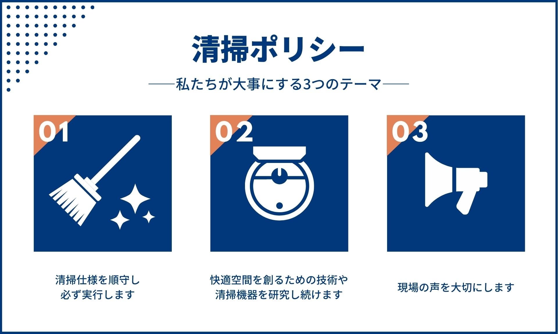 当社がお客様を第一に考えたサービスや製品を提供すること、清掃DXの価値を多くの人に広めていく存在としてあり続けることをみなさまにお約束します。