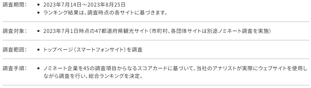2023年6月現在、47都道府県に加え、全国には1,718もの市町村があります。また、温泉協会やホテル協会など、観光関連協会も多数存在しています。これら自治体や観光協会について、最新のまとまった情報は存在せず、今回当社が初めて手がけることとなります。47都道府県の観光サイトから開始し、地方自治体、各観光関連協会と順次サイトリライアビリティランキングの対象を拡大する予定です。