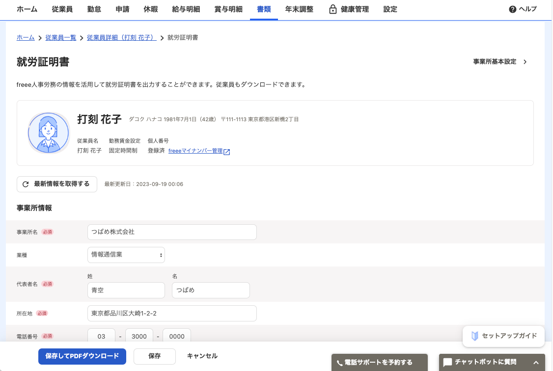 ・freee人事労務では保育園入所に必要な就労証明書のPDF出力の対応を開始しました
