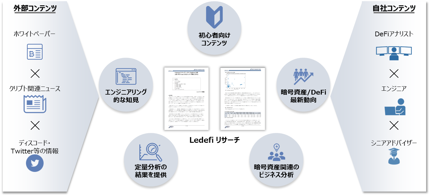 このような課題に応え、弊社は分散型金融に特化した法人向けリサーチレポートサービスをリリースいたしました。本サービスは、新規事業の構想中の方々や、社内研修を計画中の企業、暗号資産や分散型金融に興味を持つ方々を対象にしています。分散型金融に関する情報を、定性と定量の両面から体系的に整理し、提供いたします。