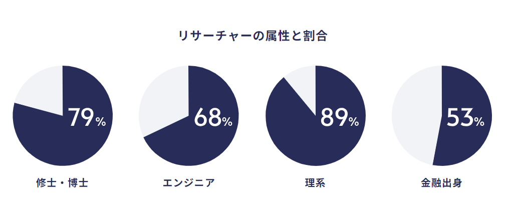また、弊社のリサーチャー陣は、金融業界出身者、エンジニア、理系の修士号および博士号を取得した専門家たちで構成されています。そのため、分散型金融、暗号資産、ステーブルコイン、ブロックチェーンに関する高度かつ定量的なリサーチを提供することが可能です。