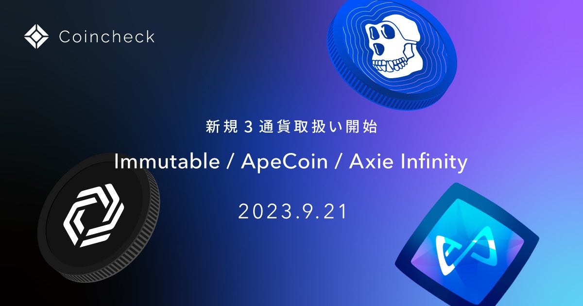 Immutable、ApeCoinおよびAxie Infinityの取扱いについての詳細