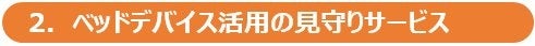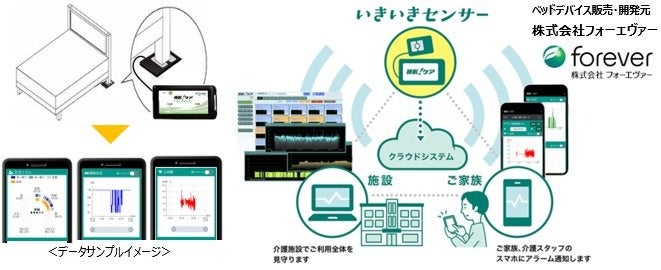 ベッドの脚元に厚み8mmの小さなセンサー機器を1つ敷くだけで、心拍数、呼吸数、離床状態、睡眠状態などのバイタルデータを計測できるサービスです。ベッドのシーツ取り換えの際やお掃除のときにも邪魔にならず、カメラが不要なのでプライバシーも安心です。データを遠隔で確認することができるため、一人暮らしのご家族の健康管理はもちろん、ご自身の健康管理にもご活用いただけます。