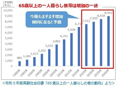 昨今は社会の高齢化がさらに進行しており、今後はシニアの一人暮らし世帯の増加も見込まれています。その一方で賃貸住宅の契約がしづらいなど、単身者を中心にシニア特有の住宅問題も社会的な課題として浮上しつつあります。