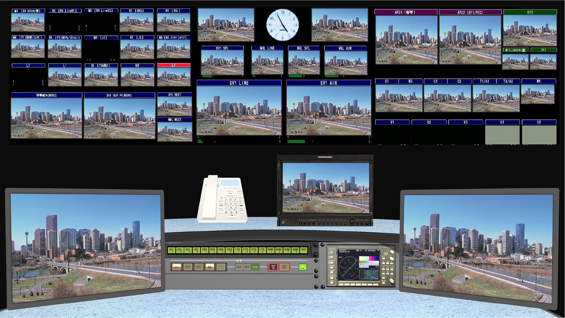 放送局には番組・CMの送出や監視を行うマスター室があります。バーチャルマスターオペレーターは、マスター室のレイアウトをパソコン画面上にCGで忠実に再現。マスター室内の機器のオペレーションや監視業務をリモート環境でリアルタイムに実現するシステムです。マスター室にいなくても自宅や別室からリモート運用が可能なため、マスター業務の大幅な効率化につながります。外部ネットワークと切り離されていることから、高いセキュリティも確保しました。複数局のマスターの統合監視や次世代クラウドマスターへの展開も可能なほか、放送以外にも、ビルやプラントなど様々な監視業務での利用も見込まれています。