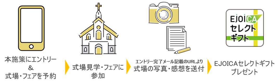 「式場探し特典」はサイトを通じてエントリーし、挙式お呼び披露宴の会場見学・フェア・オンライン相談会についての 一定の条件を満たした方を対象に特典を付与する施策です。また、「指輪選び特典」もサイトを通じてエントリーし、婚約・結婚指輪選びについての一定の条件を満たした方を対象に特典を付与する施策です。