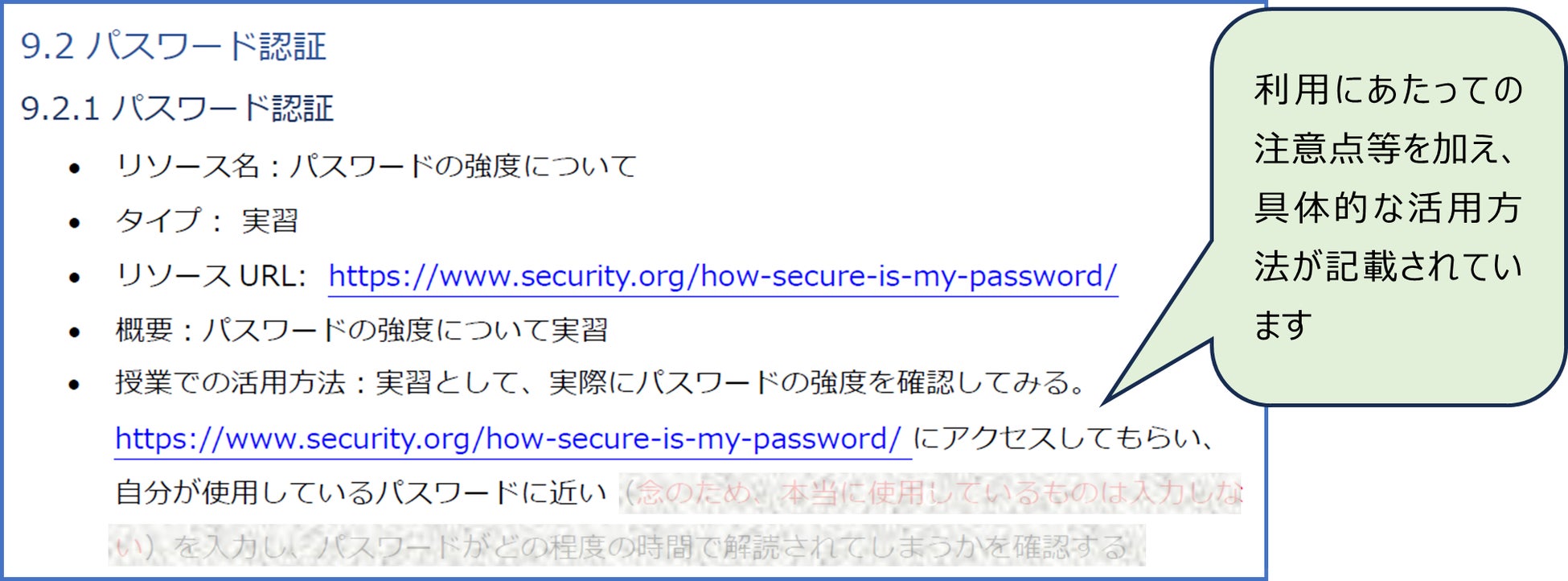 ・実習:生徒がかんたんに手を動かして行うことができる実習の方法を記載