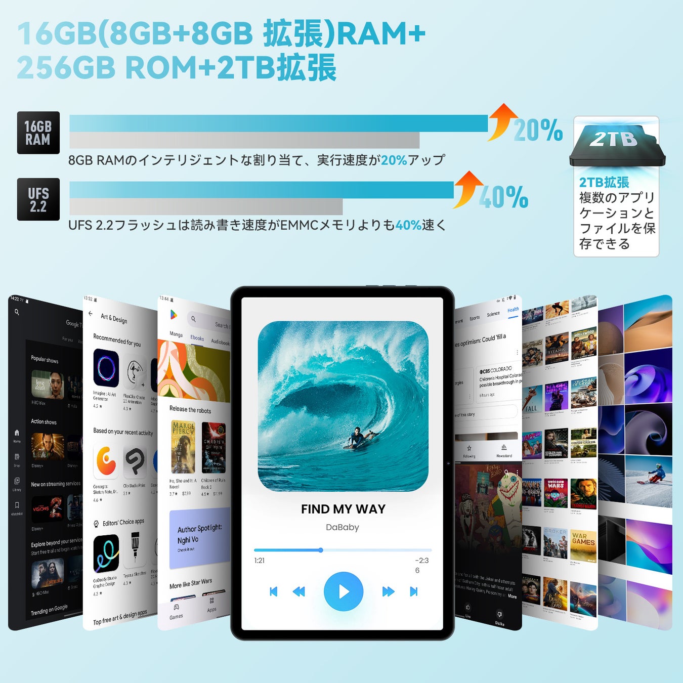 Hpad2 Proは11インチの高解像度ディスプレイを採用しており、オリジナルの画質と鮮明な映像をより良く表示します。11インチ2K(2000*1200)の高精細フルスクリーンディスプレイは、1670万色をサポートしています。8mmの超薄型ベゼルと92.2%の超大画面占有率を備えています。また、TÜVのアイケア認証を取得しており、Widevine L1もサポートしているため、30以上の主要なビデオアプリで高品質なビデオ再生を楽しむことができます。さらに、4つのスピーカーとKクラスアンプを搭載しており、没入型のシアター体験このHeadwolf HPad2 Proタブレットは、AmazonとRakutenで購入できます。