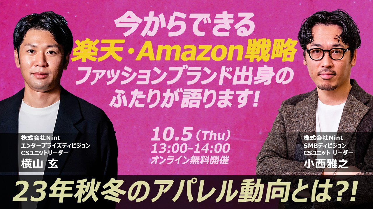 「データで世界を自由にする。」をミッションに掲げる株式会社Nint(本社:東京都新宿区、代表取締役:吉野順子、以下Nint)は、楽天・Amazonの23年秋冬のアパレル動向を語る無料オンラインセミナーを開催します。