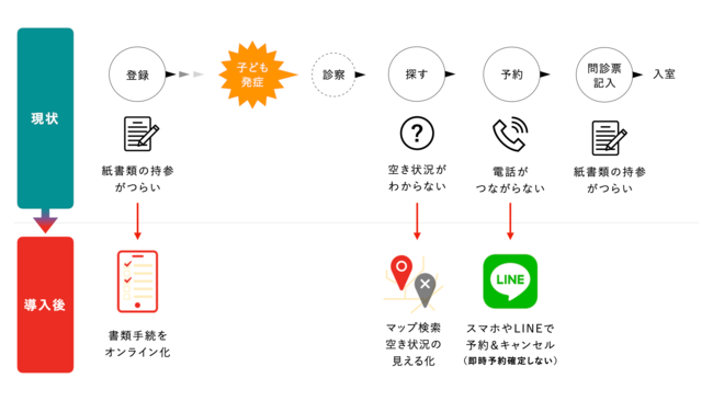 内閣府の調査(※)によると、全国の病児保育室の利用率は約30%と言われています。十分に活用されていない大きな原因は、認知不足に加え、電話予約に代表される使いづらい仕組みであると考えられます。