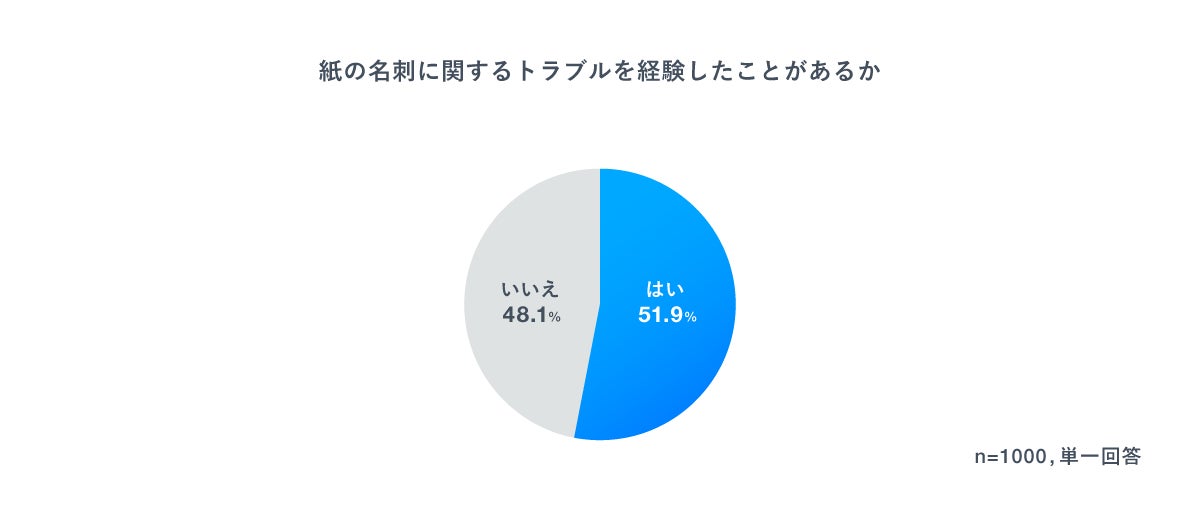 ・5割超が紙の名刺に関するトラブルを経験。「商談時に名刺を切らした」が上位に