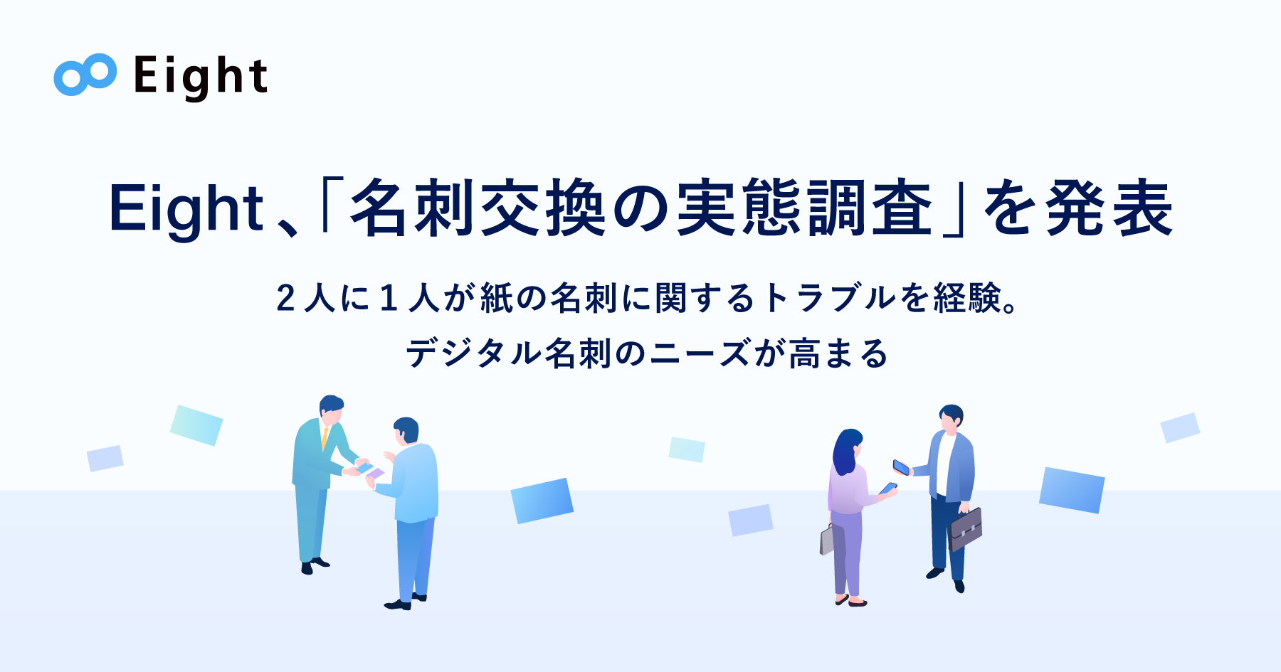 また若年層を中心にデジタル名刺の需要は高まっていることが今回の調査結果でも明らかになりました。電子決済やチャットツールが浸透し、スマートフォン一つでビジネスからプライベートまでを完結できる現在、将来的には名刺管理・名刺交換もスマートフォン一つで完結できる世の中に変化していくと考えています。Eightでは、時代の変化に応じて新たな出会いの機会を提供していけるよう引き続きプロダクトの開発を進めていきます。