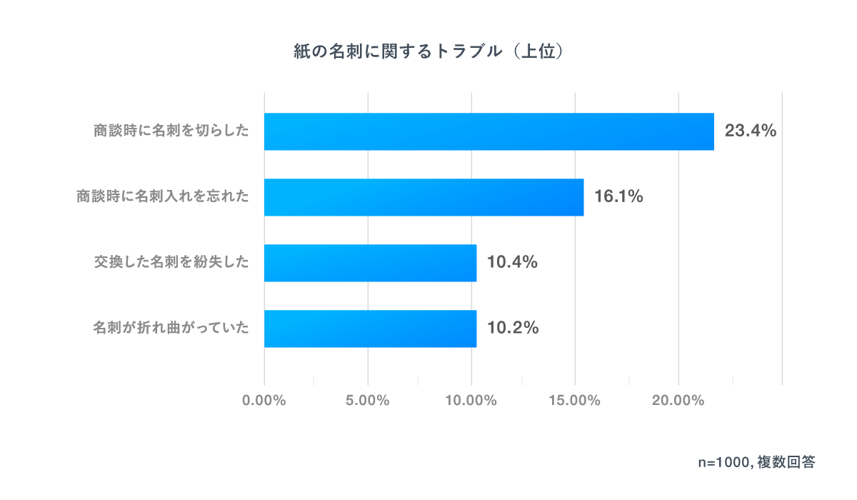 ・5割超が紙の名刺に関するトラブルを経験。「商談時に名刺を切らした」が上位に