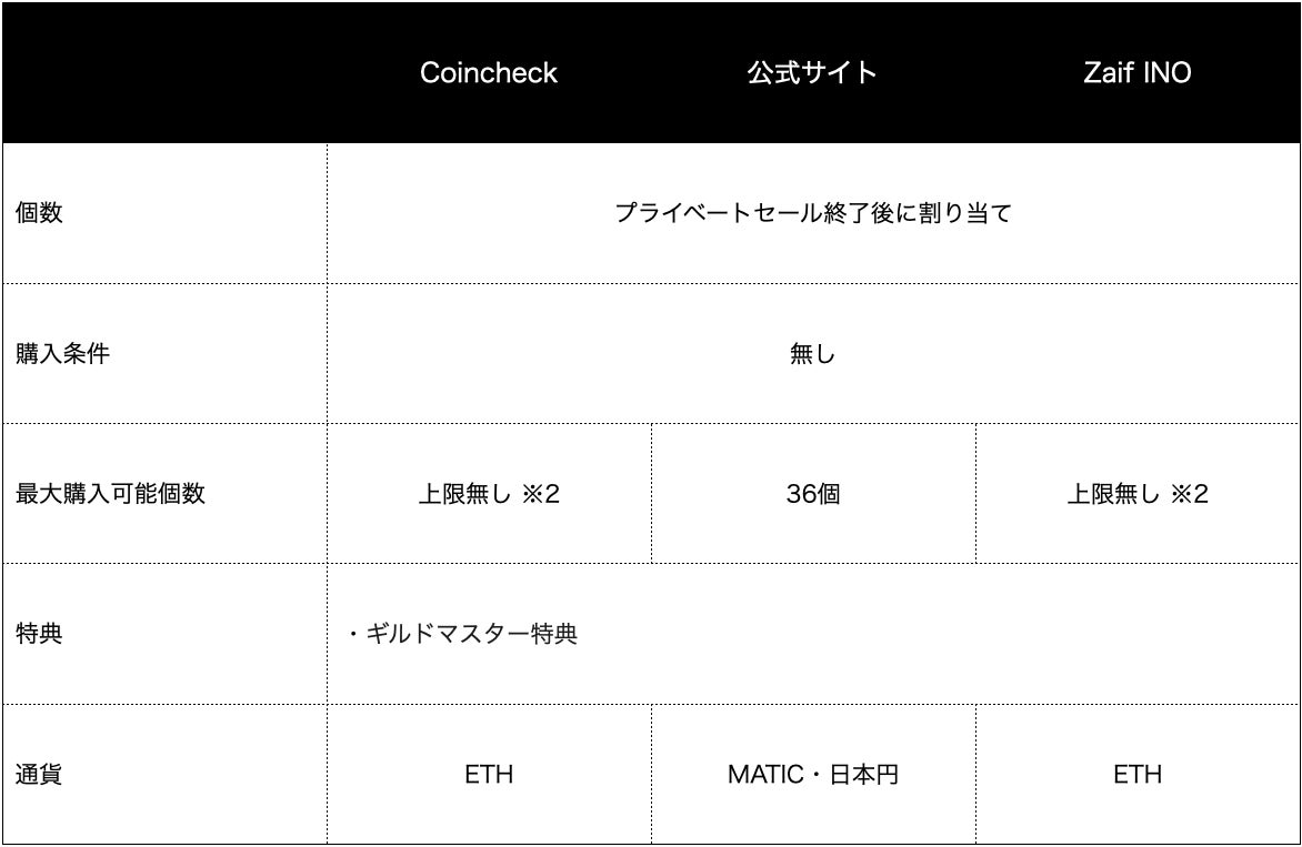 Wizardry BC INOプライベートセールでは、「Adventurer Genesis Collection」1個購入ごとに冒険者NFT1個がもれなくプレゼント(※3)されます。Coincheck INOでご購入された方は対象外となりますので、ご注意ください。