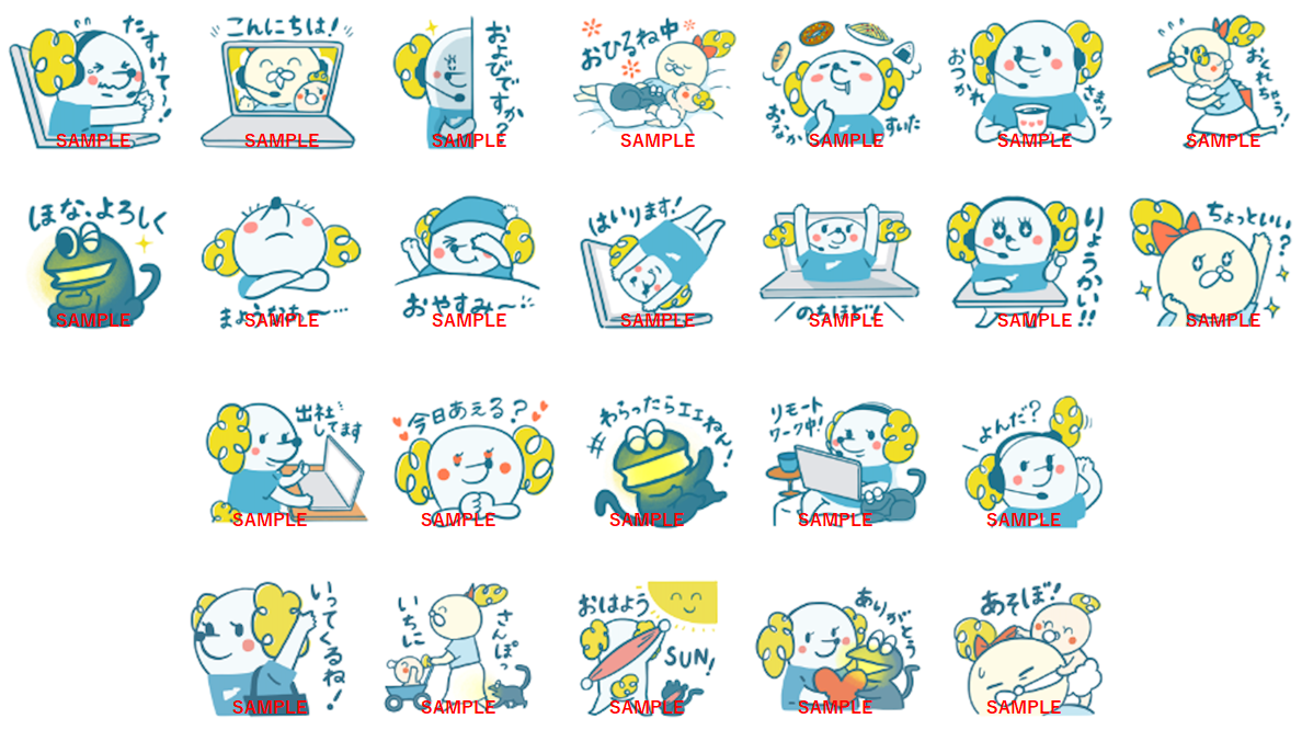 新型コロナウイルス感染症や働き方改革の推進によりリモートワークが普及し、その働き方は、「ハイブリット型」として定着しつつあります。オンラインコミュニケーションのメリットが意識される一方で、その難しさを感じるとの声があるのも現状です。全アシスタントがリモートワークのオンラインアシスタント「フジ子さん」は、オンラインコミュニケーションを使いこなし、ユーザーの皆さまやアシスタント同士でのやり取りを実施していることから、「フジ子さん」の日常におけるコミュニケーションシーンを、公式キャラクター「コロネフ」とその仲間達のスタンプとして表現しました。