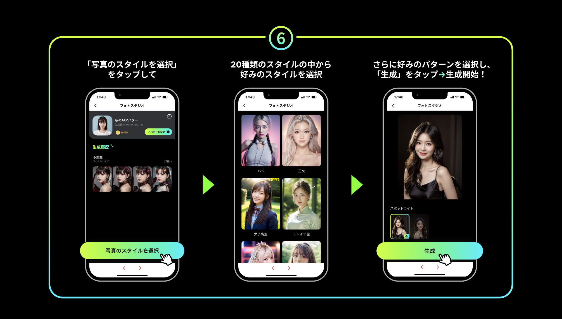 「フォトスタジオ」で自分だけのオリジナルAIアバターを生成し、生成画像をInstagramでシェアして、コスメを当てよう!
