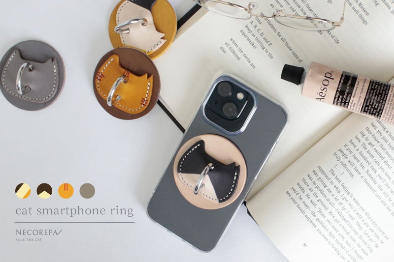お買い物が猫助けになるブランド「NECOREPA/」より、スマートフォンにつけるだけでワンランク上のお洒落アイテムになる、「スマホリング」登場。