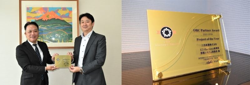 「Project of the Year」は、OBCが提供する「奉行シリーズ」の拡販において優れたプロジェクトを企画進行し、販売実績、ならびにその取り組みと活動においてきわめて優秀な成績を収めたパートナーに贈られる賞です。三谷産業は「奉行シリーズ」の販売実績、および、三谷産業が開発するクラウド間のデータ連携ツール「Chalaza」を利用した「奉行クラウド」の販売促進に向けた取り組みが評価され、このたびの受賞に至りました。