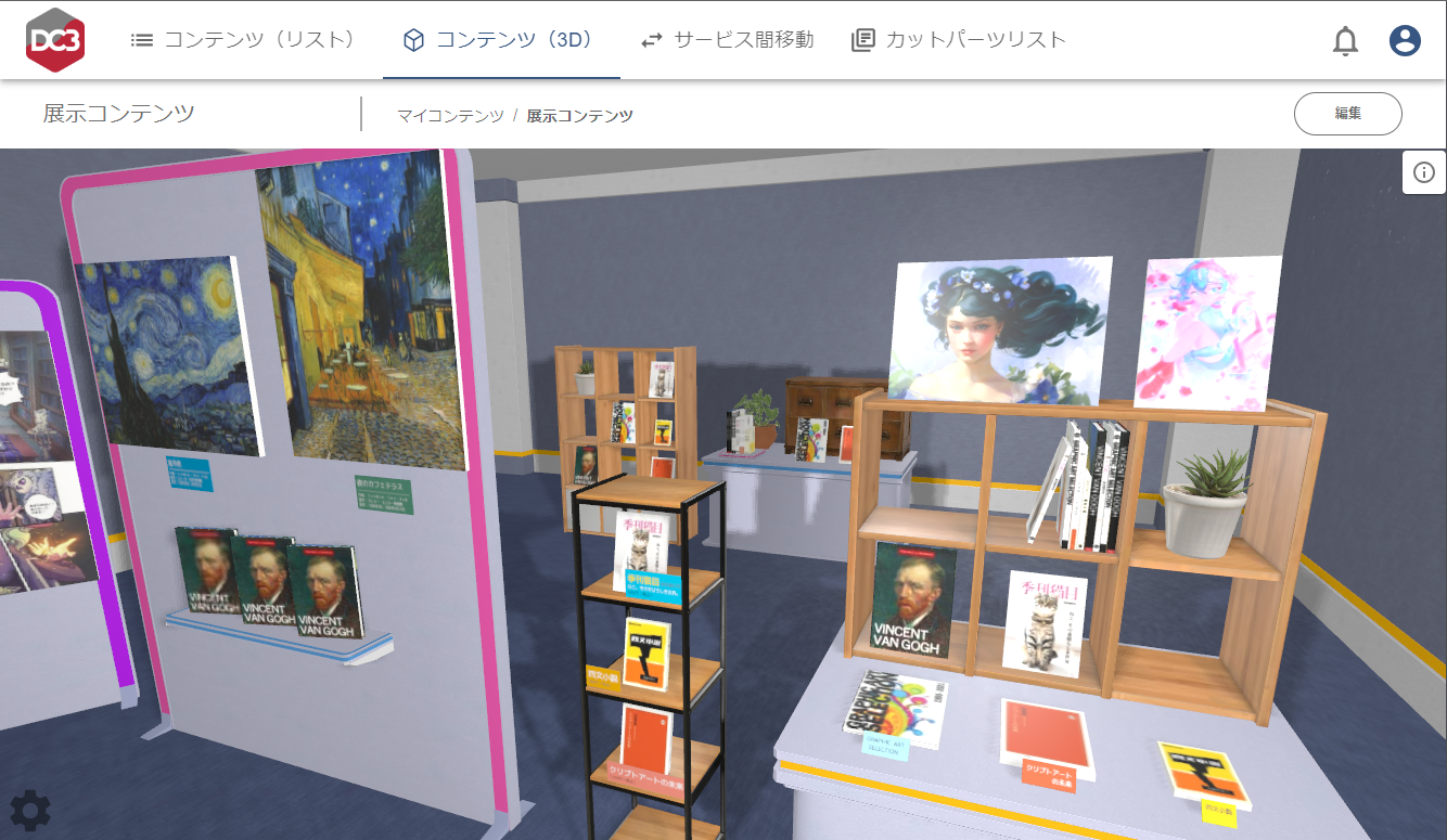 さらに、DC3マイルームには自身が保有するコンテンツを3D空間にディスプレイし、ウォークスルーする機能があります。また、その3D空間のURLを発行し、外部に公開することも可能です。