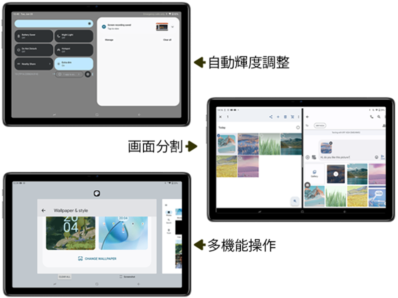 自動輝度調整は、ANDROID 13のインテリジェントな機能です。 周囲の明るさの変化に応じて画面の明るさを自動的に調整し、あらゆる照明条件下でクリアで快適なディスプレイを実現します。 画面分割は、ANDROID 13のもう一つの強力な機能です。 画面を2つのウィンドウに分割し、異なるアプリケーションやコンテンツを同時に表示することができます。