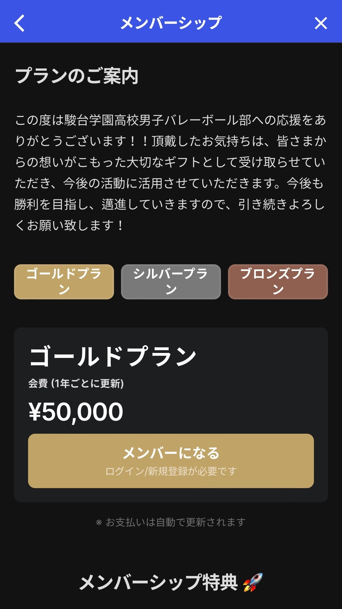 メンバーシップ機能からファンクラブ会員になって頂くと、チームから特別なグッズをお届けします!