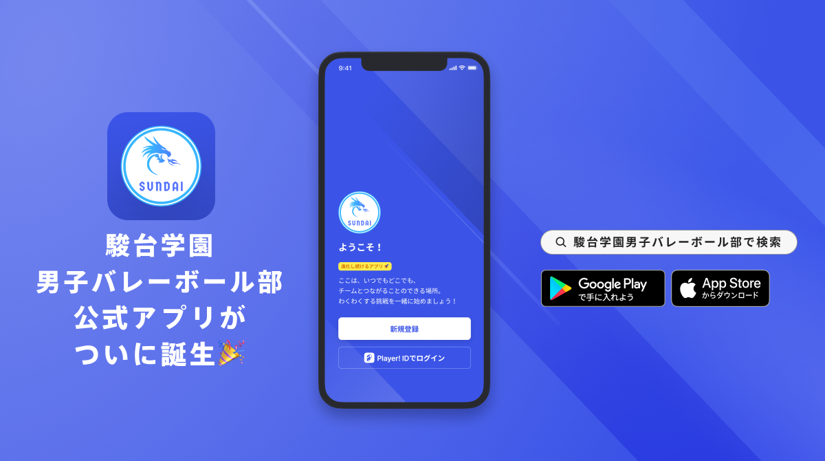 AppStoreもしくはGooglePlayで「駿台学園男子バレーボール部」と検索!