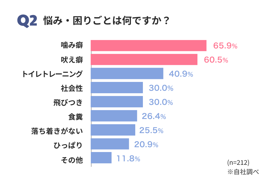 2021年に当社が独自に行ったアンケート調査によると、犬を迎えた飼い主の96.4%が何らかの悩みを抱えていることがわかりました。