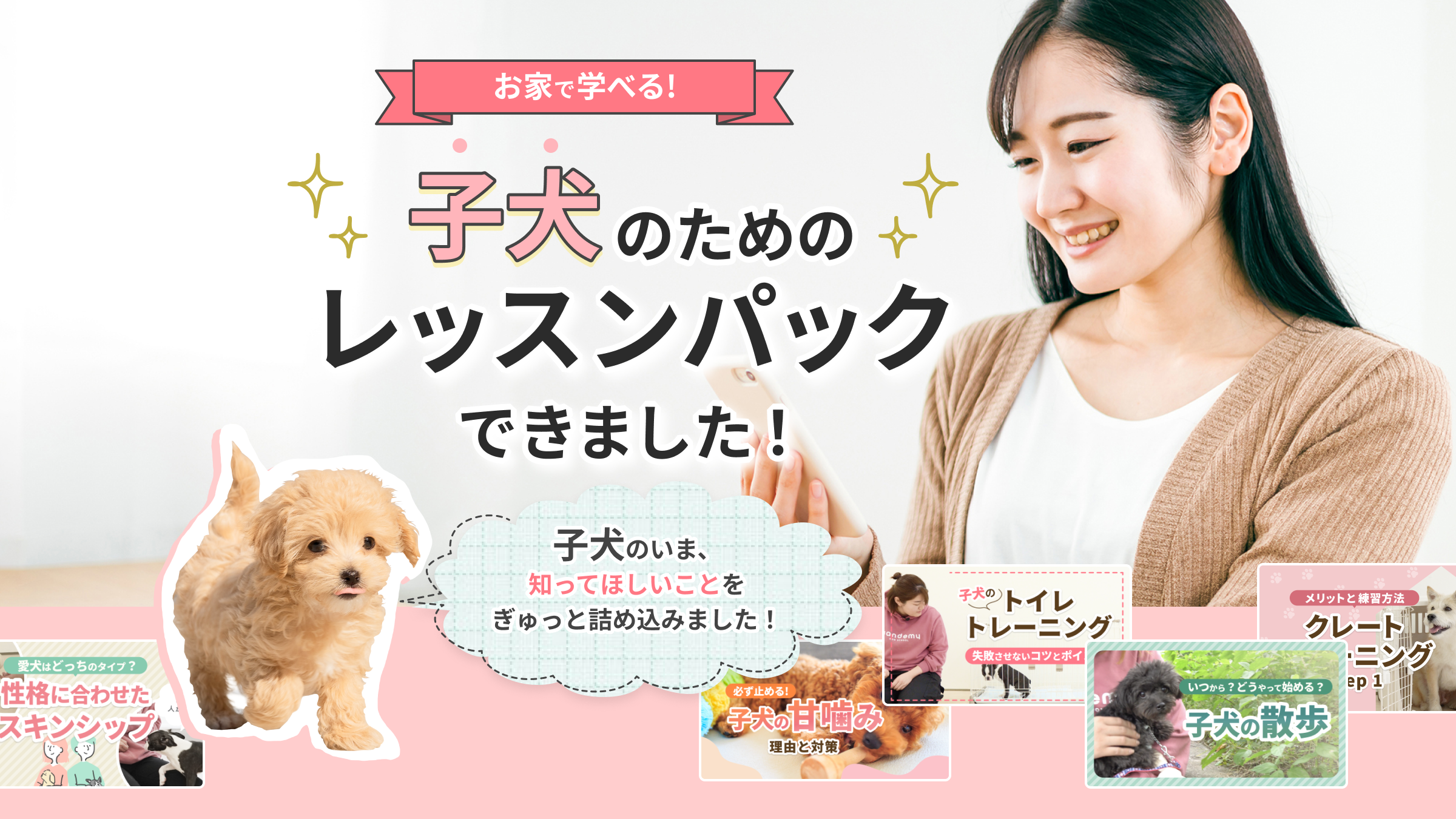 本レッスンパックは、ワンデミーが独自に開発した「子犬のためのレッスン動画」パッケージです。