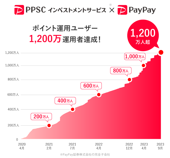 サービス提供開始から約3年となる2023年4月に1,000万人を突破し、その後もさらに多くの方に疑似運用体験をご利用いただいています。このたびの1,200万運用者突破は、ポイント運用サービスを提供する主要なポイント運用サービス取扱業者での業界最大規模をさらに更新しました(※3)。