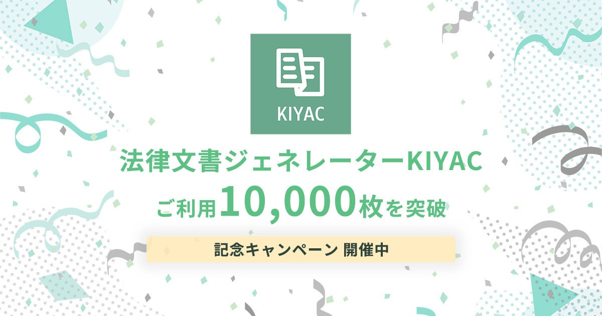 KIYAC(キヤク)は、 簡単な質問に答えるだけで「利用規約」「プライバシーポリシー」「秘密保持契約書」「業務委託契約書」などが作成できる弁護士監修・法律文書自動生成ジェネレーターです。現在は108種類のテンプレートを用意、文書生成だけではなく弁護士への法律相談も可能です。