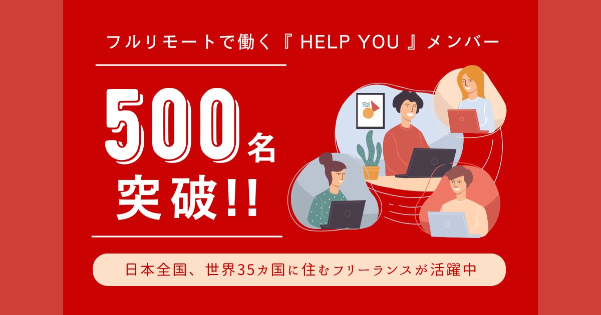参照:フルリモートで働くHELP YOUメンバーが500名突破!日本全国、世界35カ国に住むフリーランスが活躍中