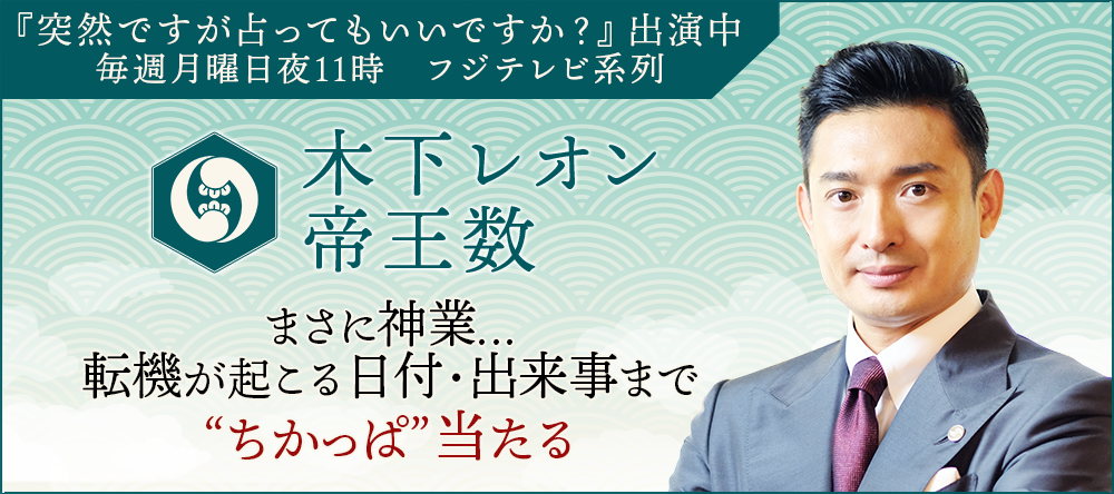大人気TV番組『突然ですが占ってもいいですか?』で話題を博し、その圧倒的な鑑定力と的中力で世の中を席巻する「木下レオン」。占術界の王にふさわしい「木下レオン」のオリジナル占術「帝王数」であなたの運命や現実に言及していきます。