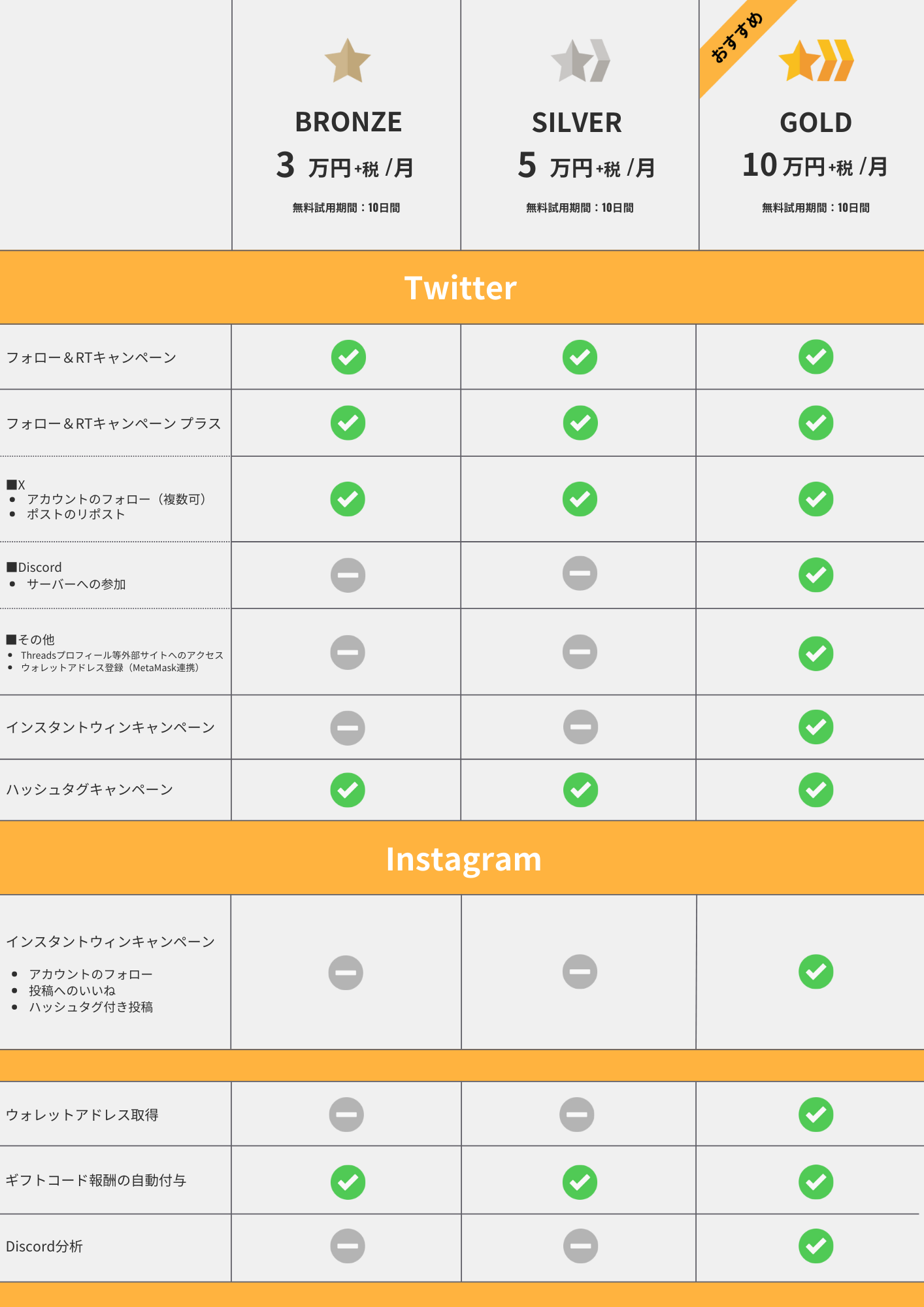 「ソシャマ」に、新たに下記機能を追加いたしました。これまでX(旧:Twitter)でのキャンペーンを主機能として提供してまいりましたが、Instagramでもキャンペーンを開催することができるようになります。企業・プロジェクトは、より少ない負荷で高い効果を得られるマーケティング施策の実行が可能になります。