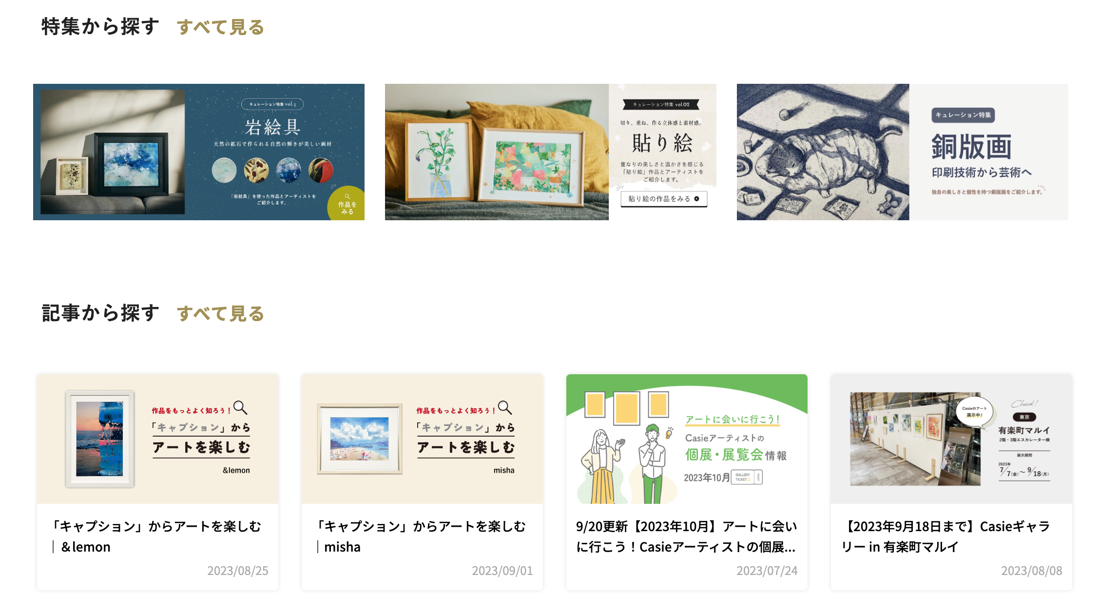 私たちCasieのサービスではこの「作品を選ぶ」という新しくて美しい習慣を可能な限り最大限に楽しんでいただけるよう、1万点を超える作品検索のアルゴリズムを日々研究しています。今回の作品検索機能のアップデートにより、多くのユーザー様の審美眼を育む一助になると信じています。