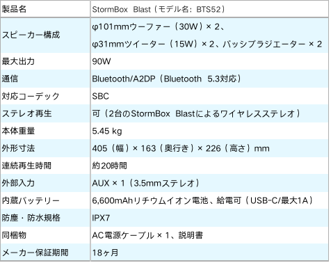 大口径ウーファー×2で重低音、イルミネーションで夏を盛り上げる防水ポータブルスピーカー「StormBox Blast」