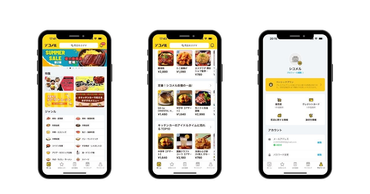 飲食店やフード提供事業者から預かったレシピを元に味や見た目を忠実に再現した仕込み済み商品を、シコメルと提携している食品工場にて製造します。出来上がった仕込み商品はアプリから発注を行うことができます。「シコメルストア」では、全17ジャンルから有名店やミシュランシェフ監修の仕込み済み商品などを発注でき、自店舗のメニュー拡充に活用することができます。また、4月10日には月額制プレミアムプランをリリースしました。プレミアム会員は2万円以上の購入で送料が無料になるほか、有名シェフ監修の豪華仕込み済み商品を購入することができます。