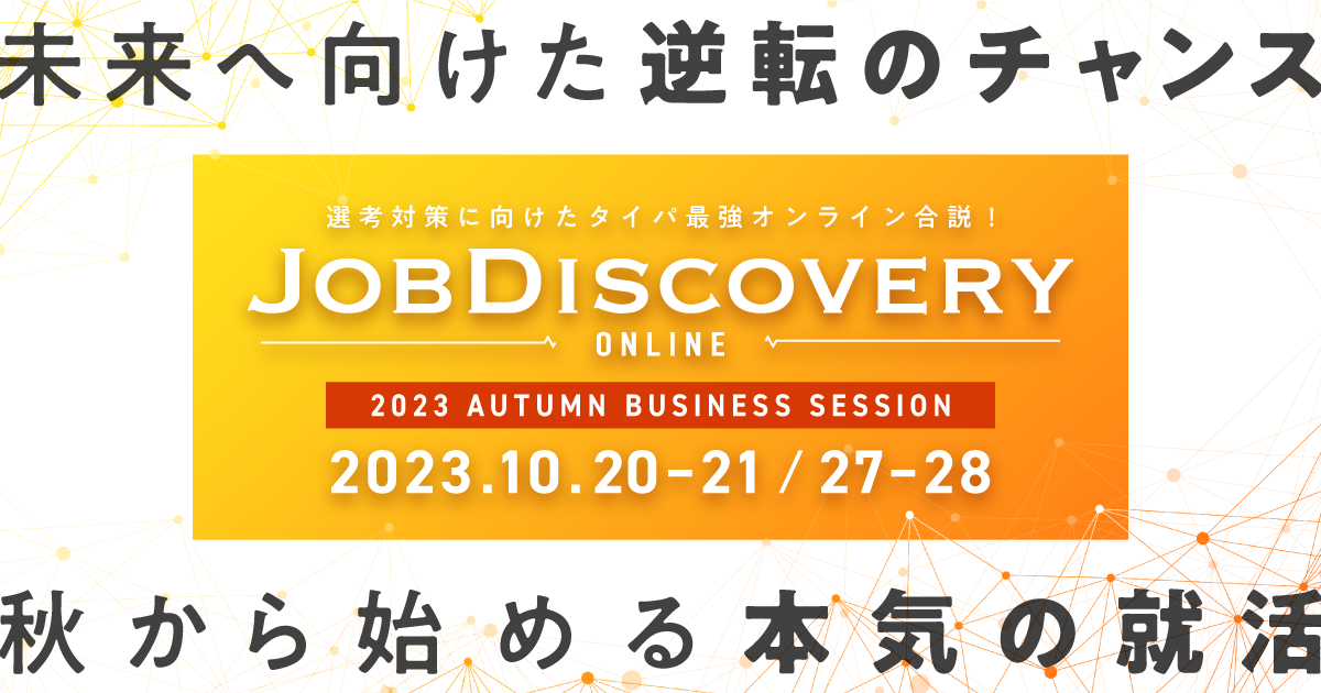 JOB Discovery Online Autumn 2023は、そんな悩みや不安を抱える就活生が、内定という人生において重要な節目へと到達できるよう全力でサポートします。