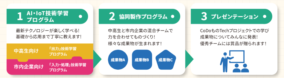 「CoDoものTechプロジェクト」は、3つのプログラムで構成されています。