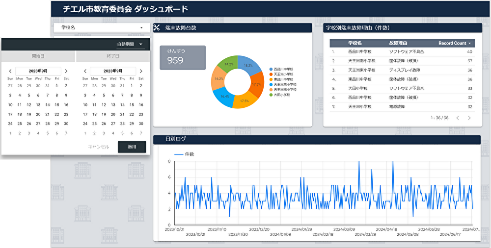 専用の Google フォームで収集した端末故障状況や研修受講率を、Looker Studioを用いたダッシュボードで可視化。