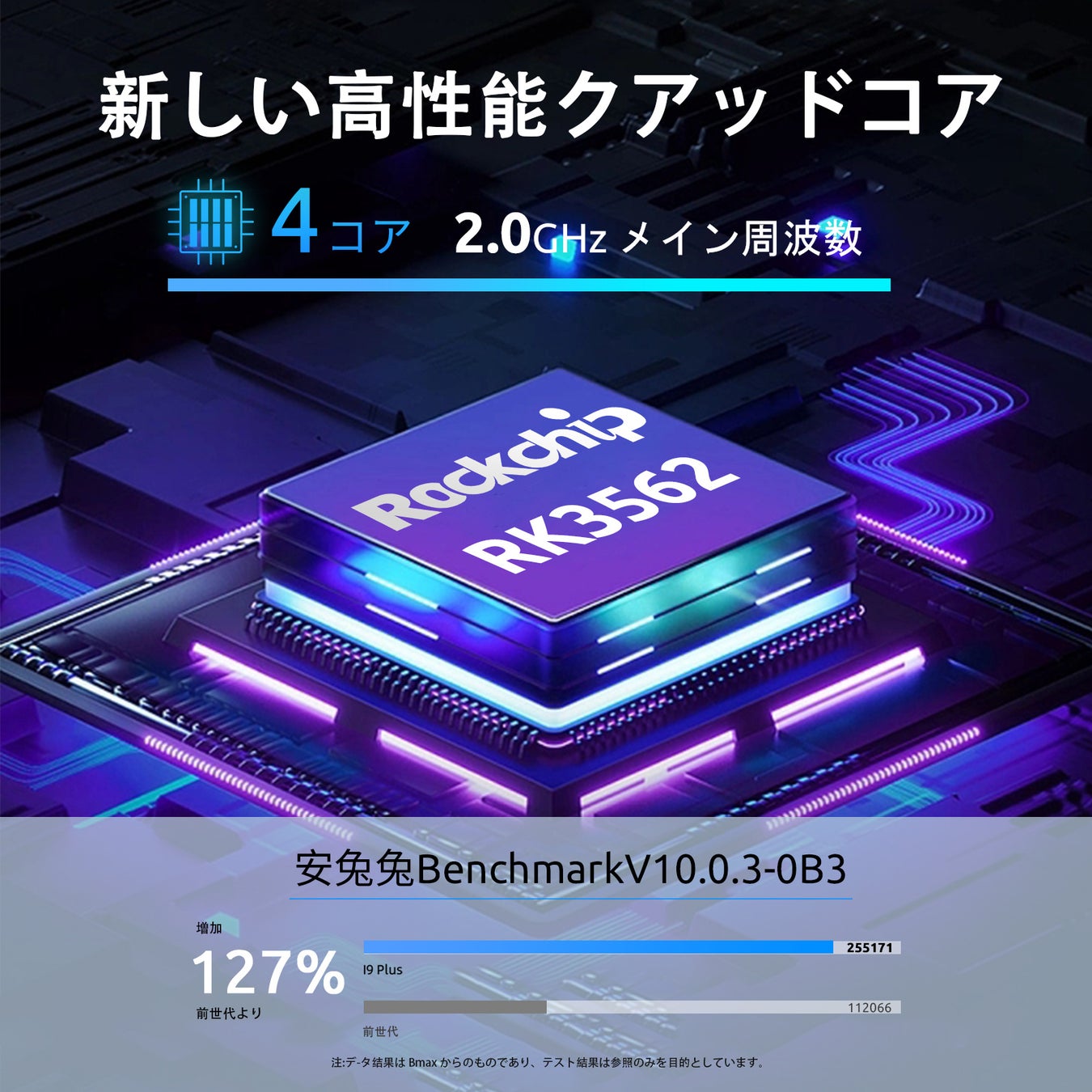 BMAX MaxPad I9 Plus Android タブレットはRockchip RK3562セッサを搭載しています。Rockchip RK3562は、4コアを搭載します。これにより、高いパフォーマンスと高い電力効率を両立させています。また、耐久航続6000mAh大容量バッテリーで、ビデオを見たり、Web を閲覧したり、音楽を聴いたりする場合でも、スムーズでシームレスな体験が得られます。出張時や旅行先でも気軽に電子書籍、映画やドラマ、音楽を楽しめます。