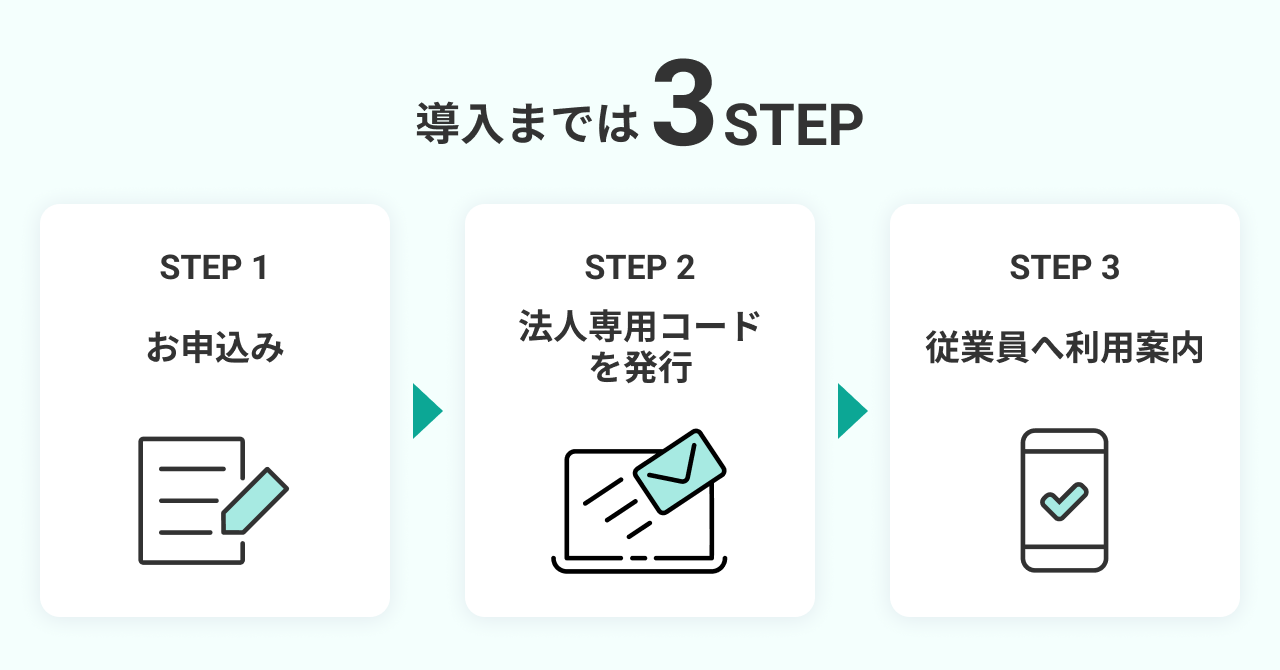 個人のお客様にご利用いただいているサービスを「企業様負担」で従業員の皆様にお使いいただけるため、ご相談のハードルが下がり、利用率向上が見込めます。