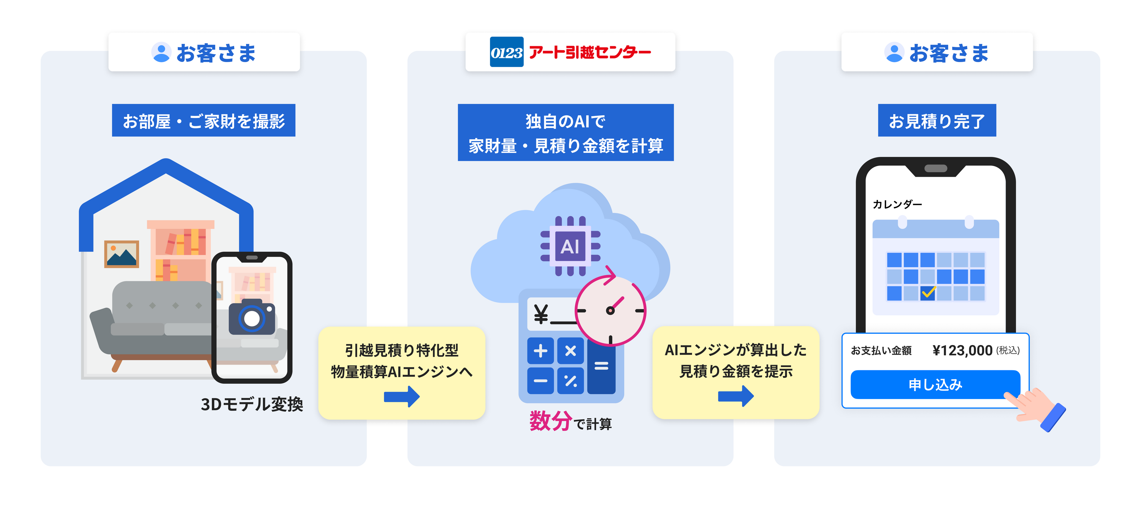 このアプリは、引越の見積りをする際、お客さま自身で部屋の中をぐるっとスマートフォンで撮影するだけで、AIが自動で見積りを算出してくれる、画期的なアプリです。本アプリを使用したサービスの開始は2024年2月を予定しています。