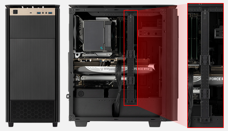 重量級のグラフィックスカードを強固に支える「GPUサポートホルダー」搭載オリジナルケース