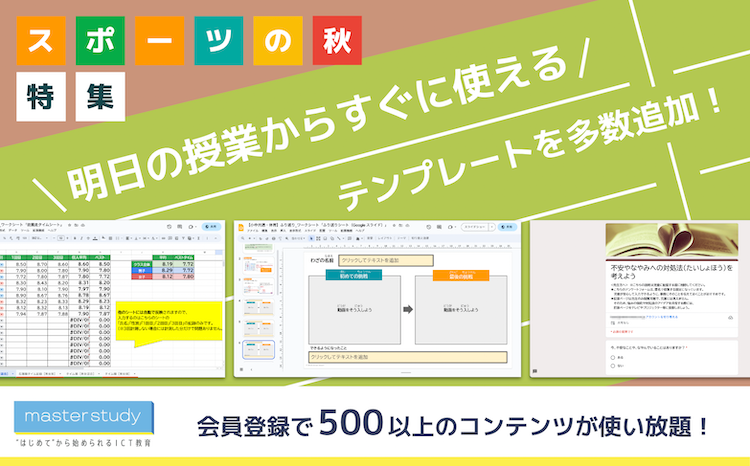 今回のテーマは「スポーツの秋」。体育・保健の授業を中心に、コピーしてそのまますぐに活用できるテンプレートを多数公開しています。本記事では、その中から3つピックアップして魅力をお伝えいたします!