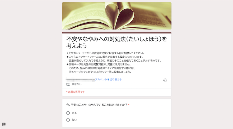 心について考える繊細な内容の授業は、ICTとの相性が抜群!Google フォームの匿名性を活かせば、子どもたちが「自己内対話」に安心して取り組めます。